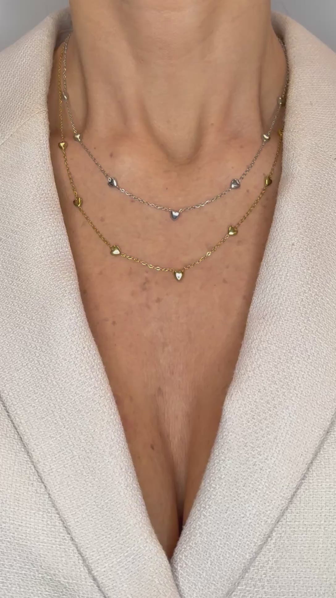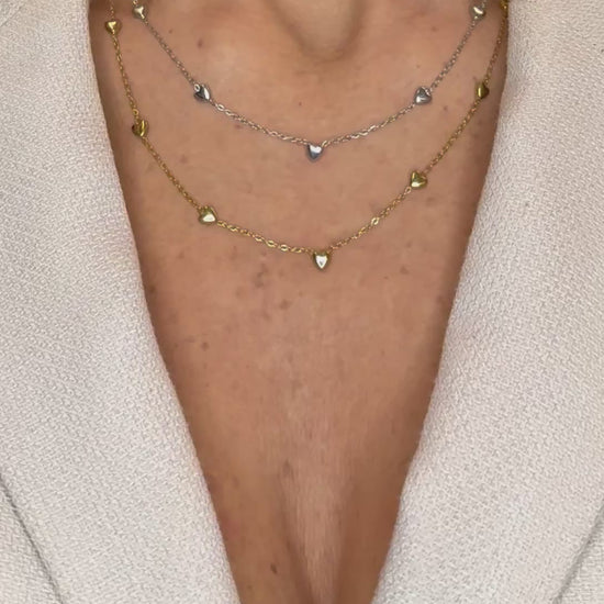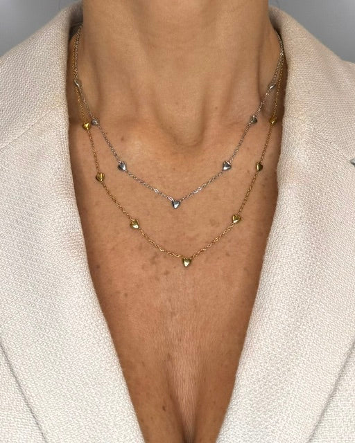- Piccoli cuori in oro sapientemente distribuiti lungo la catena
