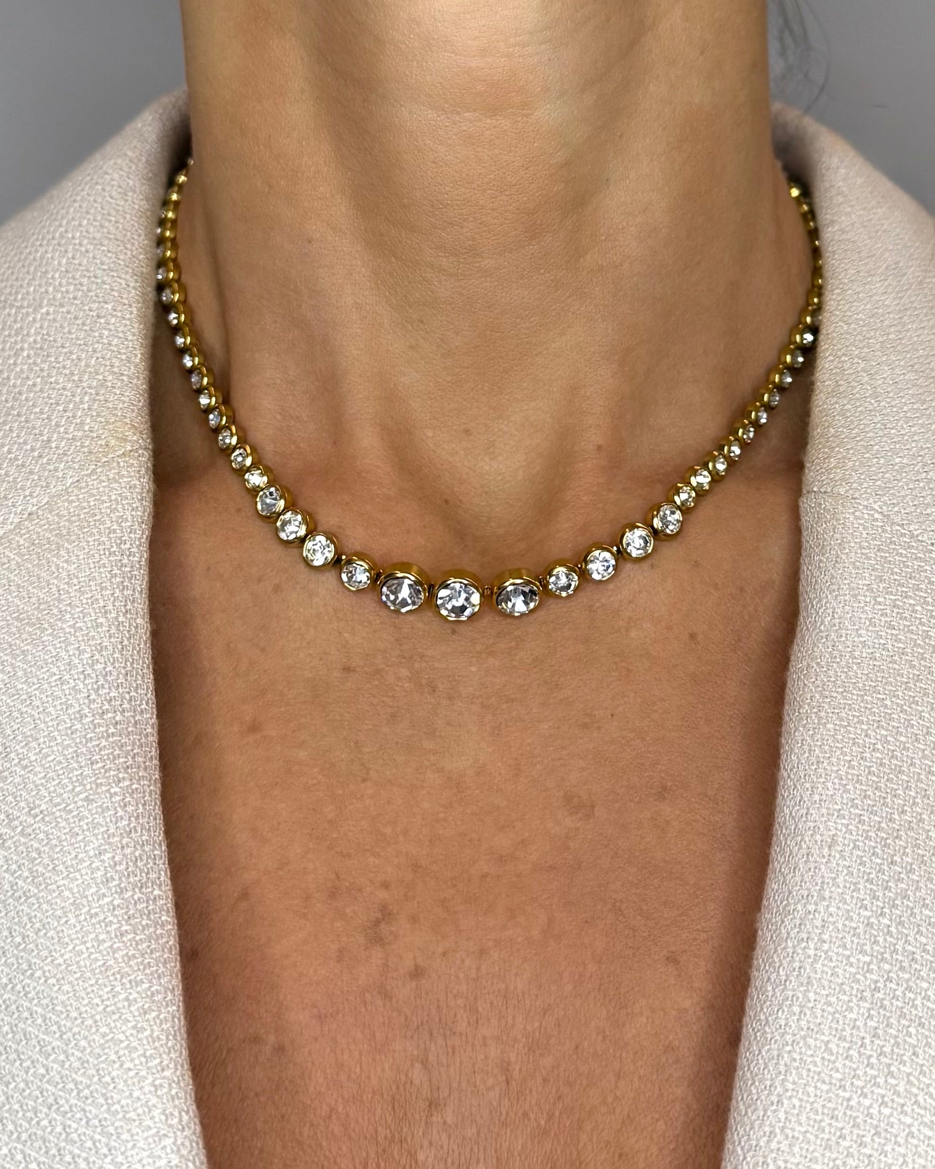 Vivi il glamour della Collana Riviera, un gioiello prezioso che evoca l'eleganza senza tempo della Costa Azzurra.